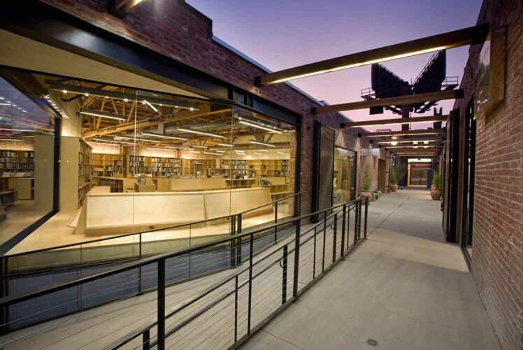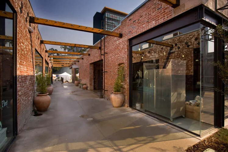 Created by retailer Urban Outfitters, Space 15 Twenty offers an extremely hip and inviting shopping experience for the Hollywood consumer. The project is an environmentally friendly reuse of existing warehouse spaces and alleyway, and provides unique retail and dining experiences to its clientele. Drawing off the vernacular architecture, Space 15 Twenty connects two major streets with a pedestrian passageway and highlights the 1920s bow truss ceilings and red brick elements.